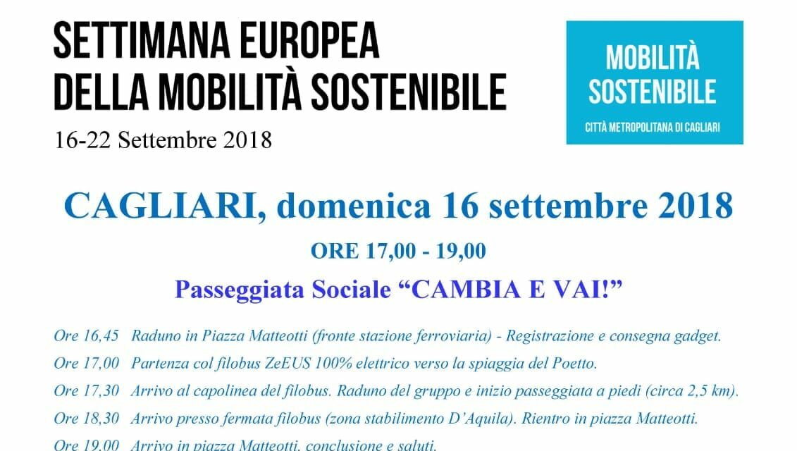 Siete invitati a partecipare alla passeggiata sociale “Cambia e vai!”, organizzata da Cittadinanzattiva Cagliari in occasione della Settimana Europea della Mobilità Sostenibile kin programma dal 16 al 22 settembre 2018.